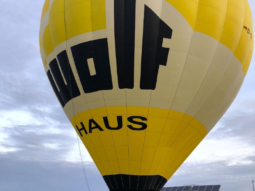 Seit Kurzem gehört ein gelber WOLF-HAUS-Heißluftballon zu unserer Flotte!